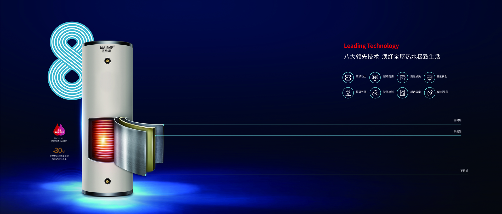 邁熱浦中國工廠致力于銅盤管承壓水箱、平板太陽能系統及空氣源熱泵的水箱設計生產;在生命歷程中,邁熱浦中國太陽能熱水箱、熱泵熱水箱、鍋爐換熱水箱、地暖供暖配件等領域走過新的生命歷程,解決數萬家庭熱水系統方案,目前我司把太陽能、熱泵和天然氣鍋爐良好的結合,讓太陽能技術廣泛應用于生活熱水與地板采暖,改善人類對美好生活的需求,追求更優越的品質生活。